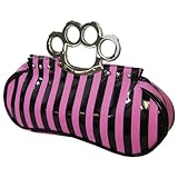 Too Fast Brass Knuckles Pink and Black Stripe Handbag Purse (