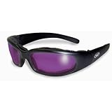 Chicago Foam Padded Glasses Sunglasses, Motorcycle Atv Sports Eyewear Shiny Black Frame Purple Lenses Has Comfortable Vented Eva Foam Padding on the Entire Inside of the Glasses to Fit Snug to Your Face and Protect Against Wind and Dust